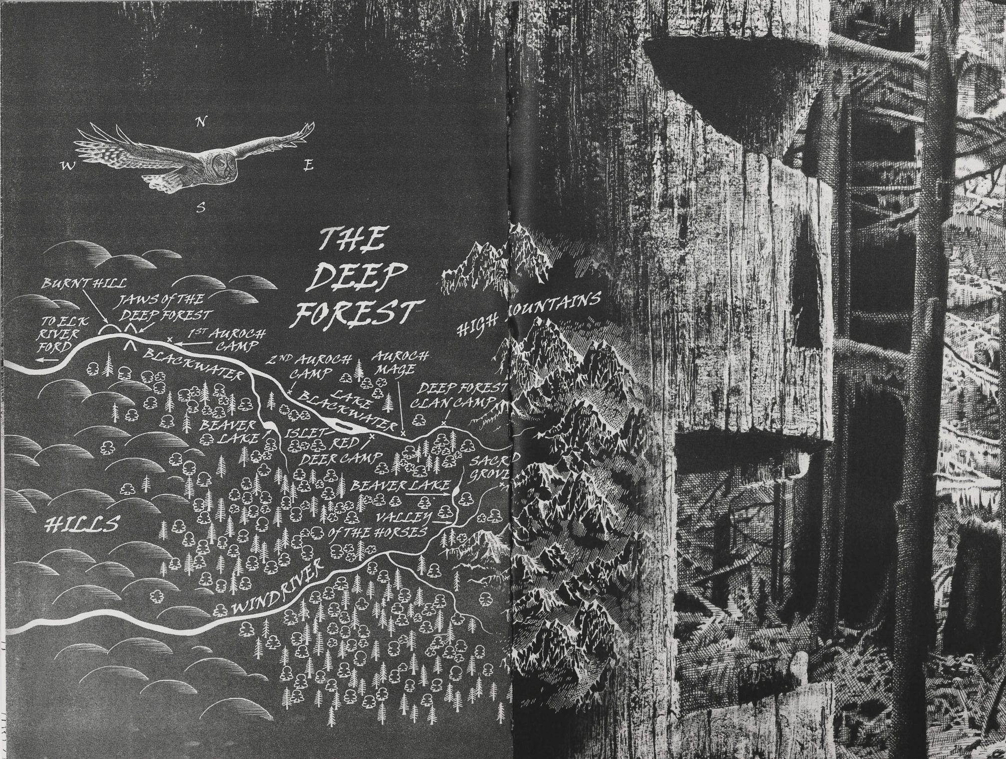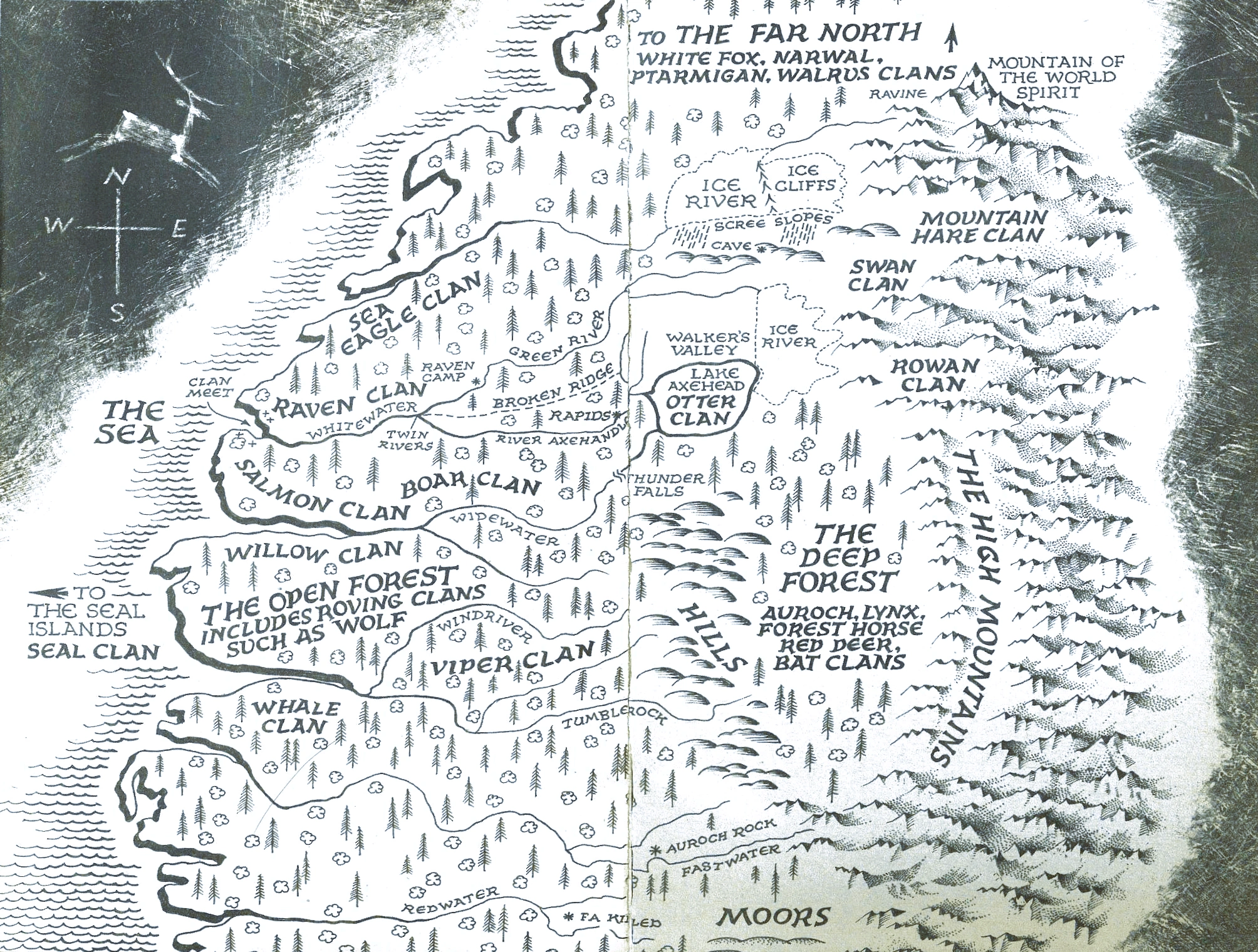 - While nearing the entrance to the Deep Forest, Torak spots Thiazzi's canoe ahead, but he sets off one of his traps. Logs fall onto Fin-Kedinn and Renn, resulting in broken ribs for the former. They spend the night on a burnt hill, where Fin-Kedinn reveals that this was the place where Torak's father shattered the fire-opal and caused the Great Fire. An ash-haired hunter stalks them that night. In the morning, Torak meets Gaup, a Salmon Clan hunter who was looking for his daughter when Auroch Clan chopped off his hand. Fin-Kedinn goes with him back to the Open Forest, but he advises Torak to find his mother's clan, the Red Deer, and to not touch the black horses. Renn spots Auroch hunters throwing a spear with Gaup's hand nearby, warning others not to trespass or face a curse. Renn uses Magecraft to create a charm to break the curse stick, and she and Torak hide in the trees until dawn. After crossing the Blackwater River, the pair notice an ash-haired hunter following them. They sleep in a yew tree that night, and Torak decides to spirit walk inside the tree to find Thiazzi. He's nearly swept away by all the voices until he locates the Oak Mage in a sacred grove with an ancient yew tree. To Renn's surprise, Torak nearly walks off the tree until she wakes him up.